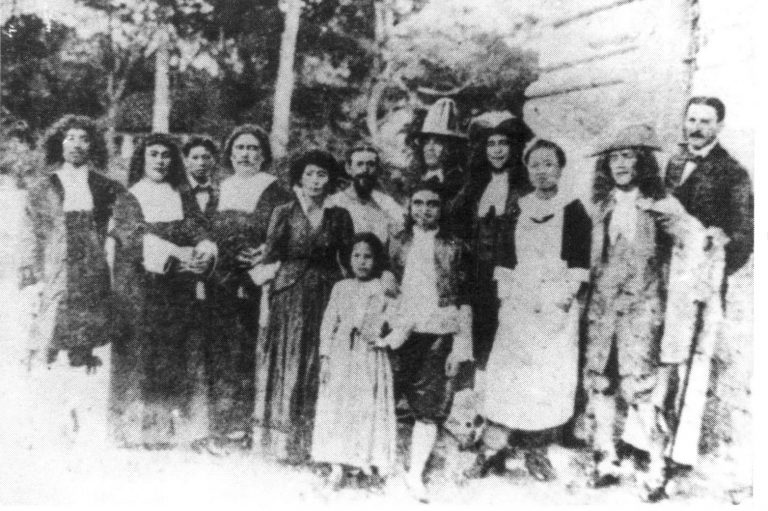 Ông Trần Phềnh (người thứ 3 từ trái sang) cùng một nhóm kịch người Pháp