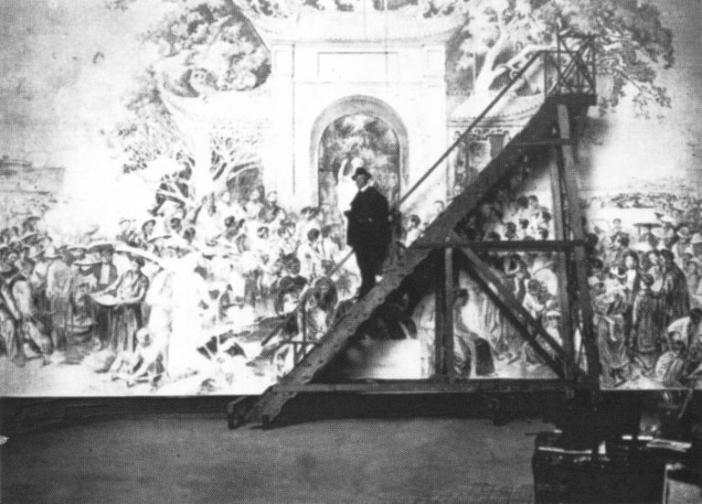 Victor Tardieu và bức tranh trang trí vẽ trên vải dán tường thực hiện cho Giảng đường lớn Trường Đại học Đông Dương