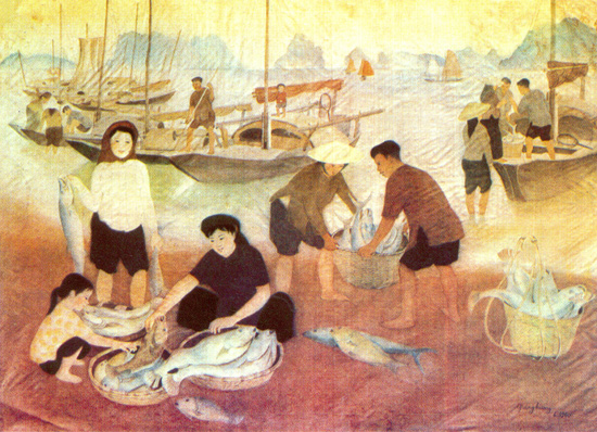 VŨ GIÁNG HƯƠNG – Hợp tác xã đánh cá về. 1960. Lụa